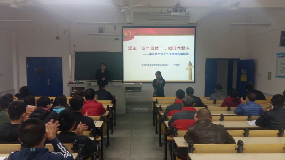 为深入学习贯彻党的十九大精神,12月4日下午,校党委副书记、校长钟毓宁在6213教室为汽车工程学院师生进行党的十九大精神宣讲。报告会由汽车工程学院分党委书记冯樱主持。